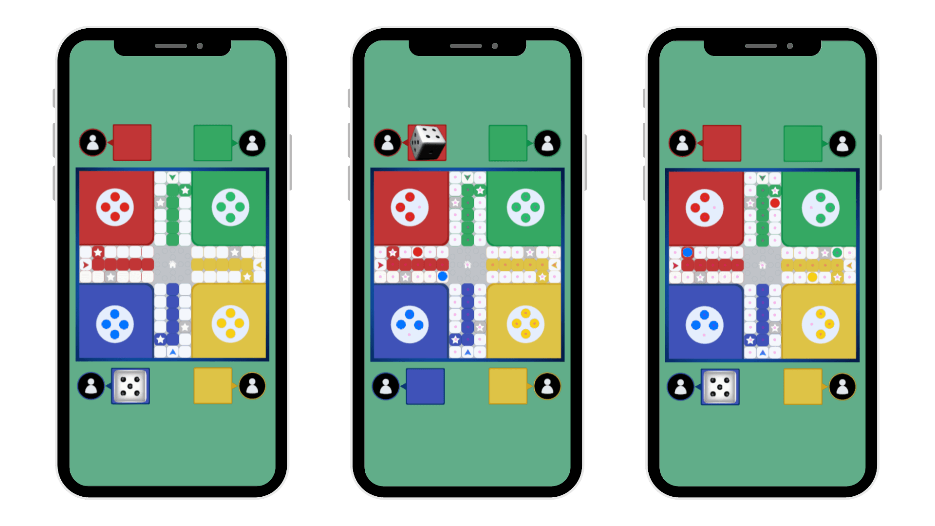 Player Movement and Dice Logic: I designed the logic that controls player movements based on dice results. This involved calculating the number of steps a player piece could move on the board, which was contingent on the dice roll outcome. This system required a robust method to translate a dice roll into a series of game actions, determining if a piece could exit its starting position (based on specific roll conditions like rolling a six) or move along its path in the game board.
