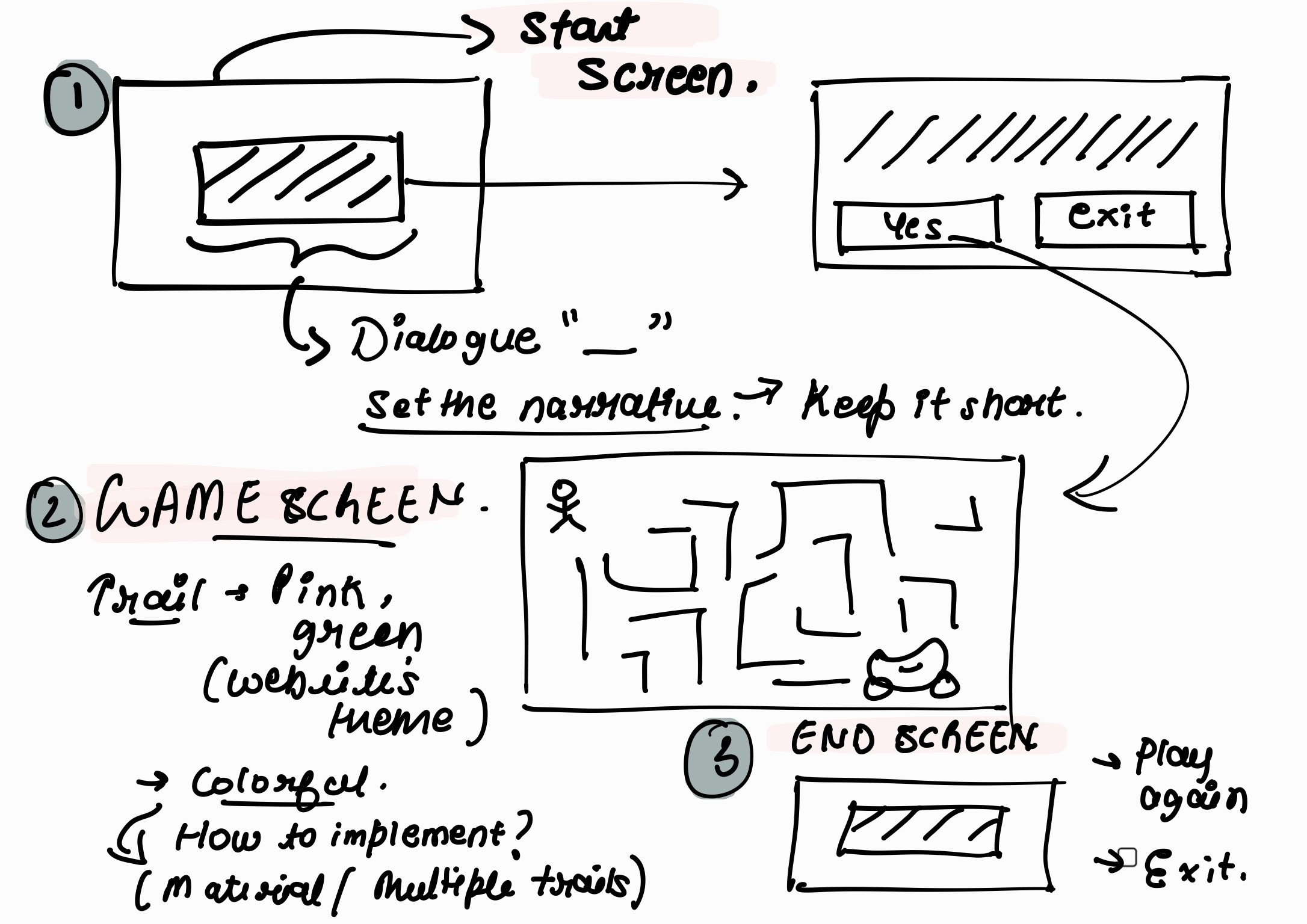 Once the prototype was confirmed, I moved to integrating more sophisticated gameplay elements and Illustrating art for the game. Work further included managing game states, transitioning between scenes with smooth fading effects, and handling the interactions with game objects.