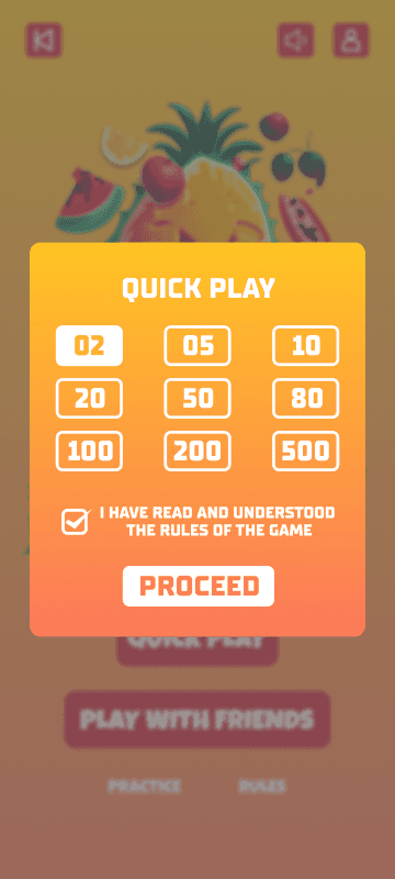 Competitive Play: The competitive aspect is central to Fruit Chop. Players are not only racing against the clock—with only one minute to accumulate their score—but are also directly competing against another player. The player with the highest score at the end of the minute wins the round and the wagered money, while the other player leaves with nothing.