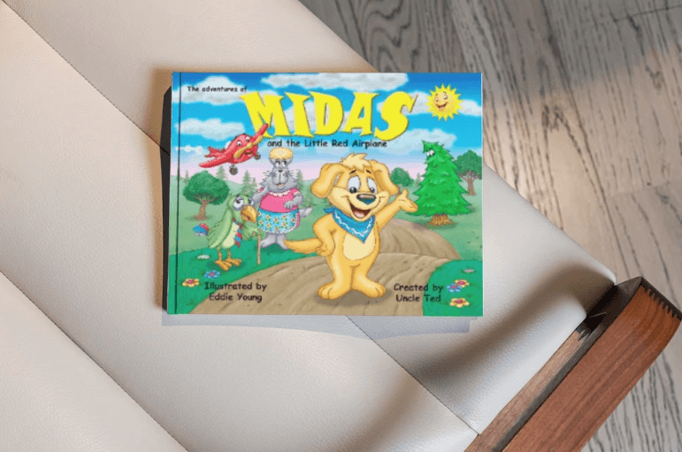 "Adventures of Midas and the Little Red Airplane" began as a heartfelt Christmas gift from Uncle Ted to his nephew, Andrew, who had a deep affection for airplanes and enjoyed spending time with Midas, Uncle Ted's real-life golden retriever. Recognizing that his young nephew couldn't yet read, Uncle Ted enriched his original typed story with illustrations. This effort led him to study cartooning intensely, culminating in the creation of a fully illustrated book. Encouraged by friends and family, and fueled by the artistic partnership with illustrator Eddie Young, Uncle Ted transformed his simple gift into a published children's book.